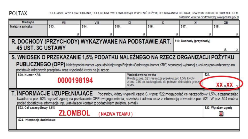 Cel szczegółowy 1,5%: ZŁOMBOL (WAŻNE, inaczej 1,5% nie zostanie dopisany do zbiórki Złombolu)